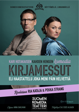 Mutta entä jos kaikki ei menekään sovitun kaavan mukaan, entä jos sivistyneesti alkanut juttutuokio murenee ja muuttuu aivan räävittömäksi? Näin juuri käy Kari Hotakaisen hauskassa ja pirullisen viiltävässä kahden hengen komediassa, jossa menestyskirjailija Mikael Taustajoki ei arvaa mitä tulee tapahtumaan, kun hän istuu pehmeään nojatuoliin messujen päälavalla.